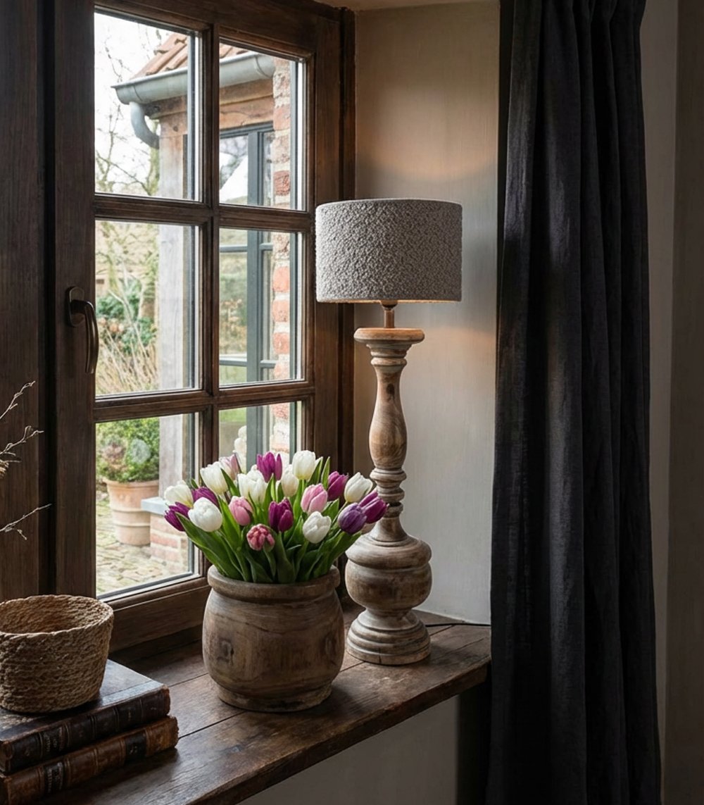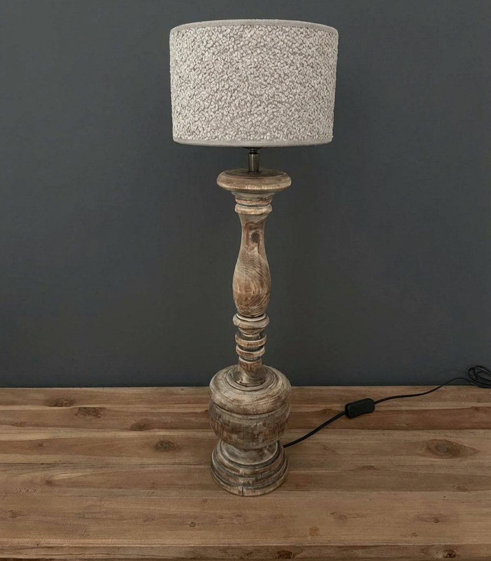 Landelijke lampenvoet. Deze lampenvoet kan dienen als een sfeervolle aanvulling in een landelijk interieur. De uitstraling van hout past perfect bij een landelijke of rustieke inrichting.
