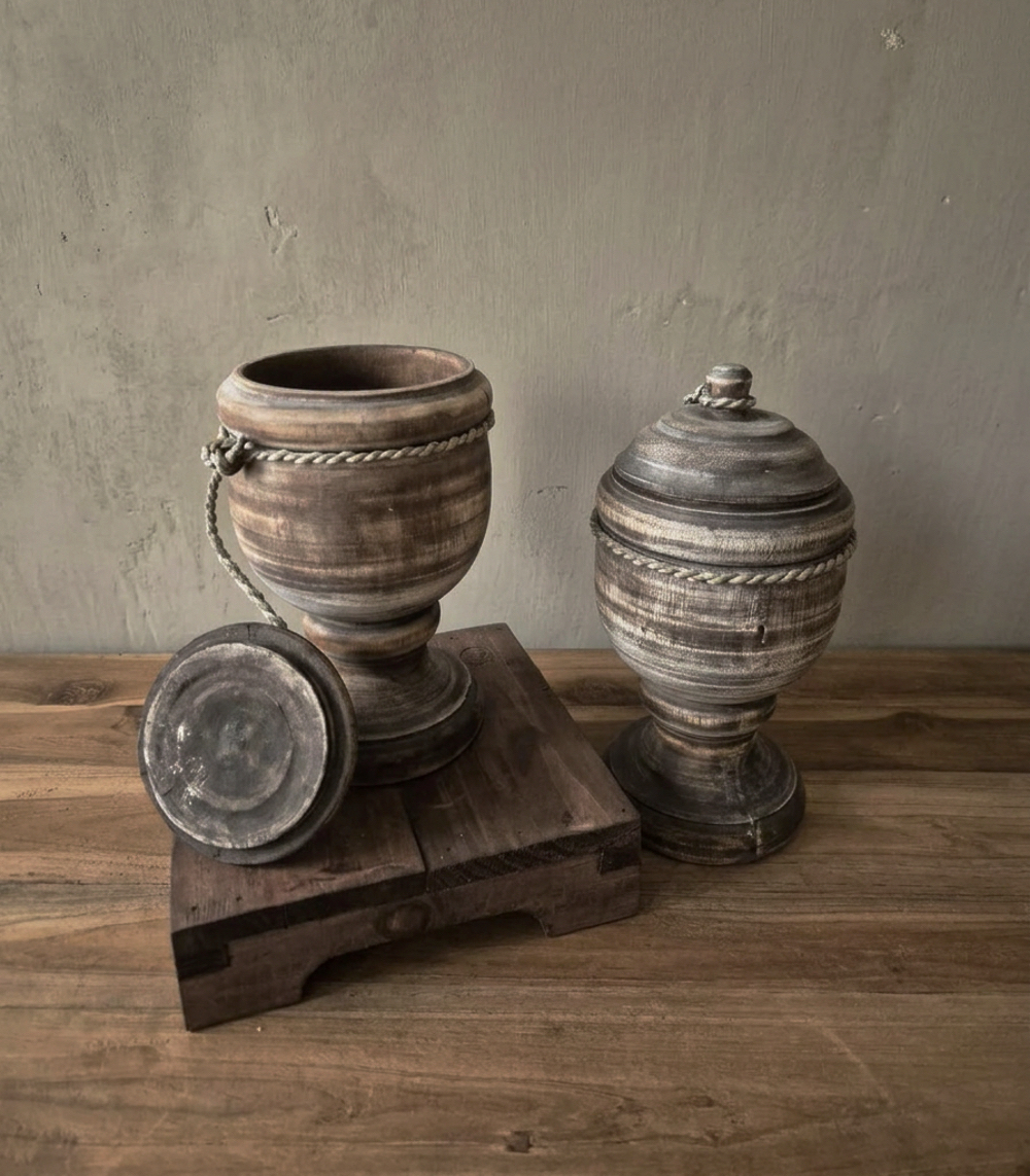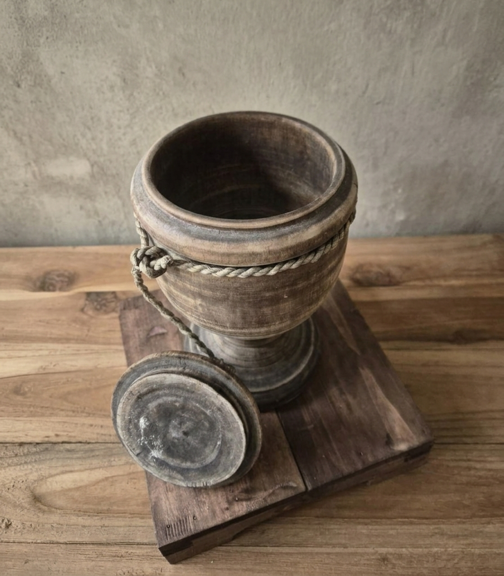 Holztöpfe gibt es in verschiedenen Formen, Größen und Ausführungen, je nach persönlichem Geschmack und Einrichtungsstil. Manche sind aus Massivholz gefertigt und wirken natürlich und roh, andere sind mit Schnitzereien oder anderen dekorativen Elementen verziert, die zum rustikalen Stil passen.