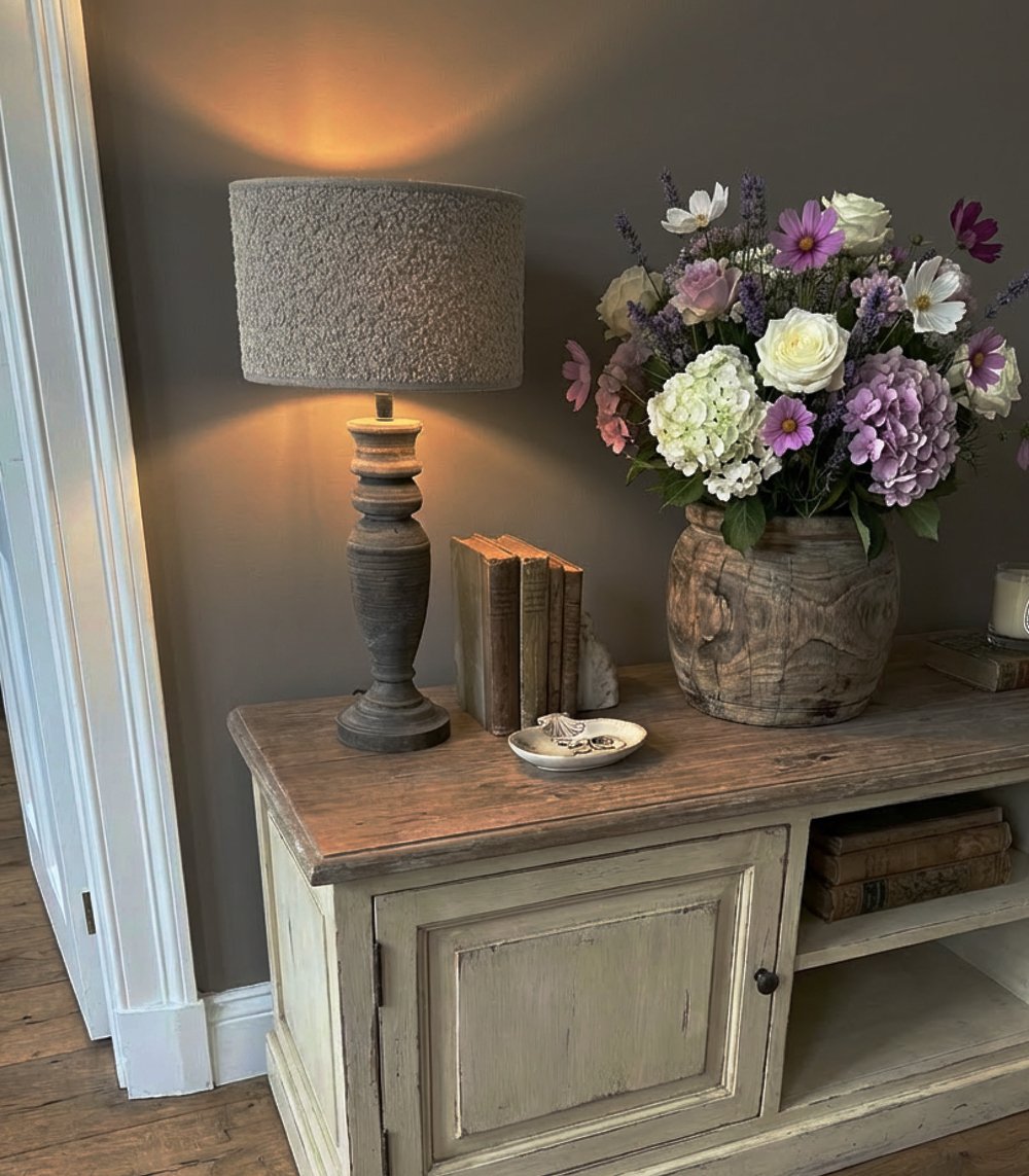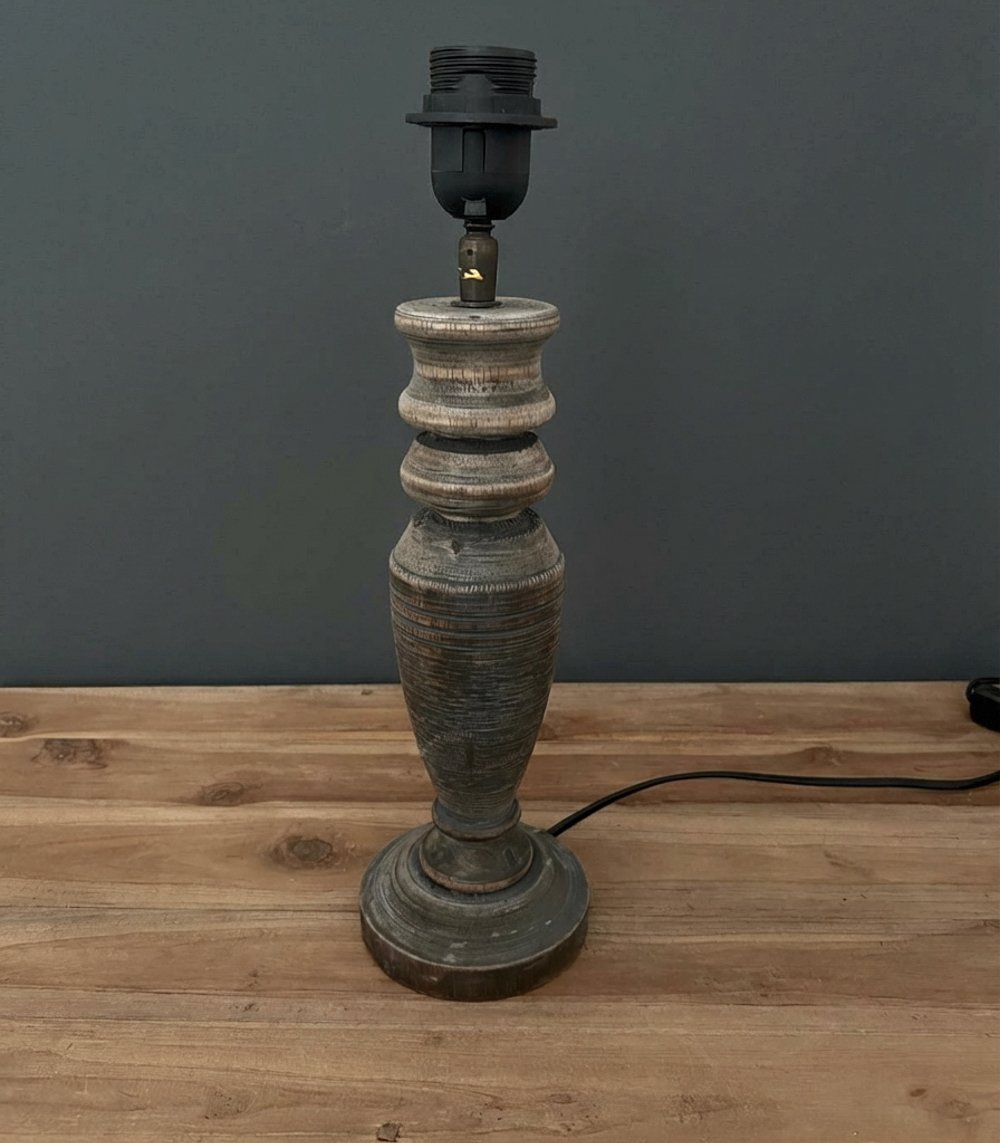 Landhaus-Lampenfuß aus Holz – Grau gewaschen – 39 cm