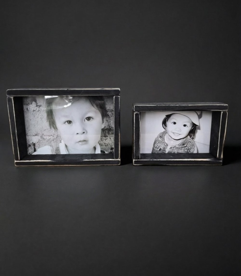 Geef je mooiste herinneringen een warme, stijlvolle plek met deze set van twee houten fotolijstjes. De robuuste houten omlijsting en de subtiele, vintage uitstraling zorgen voor een rustige en authentieke sfeer in ieder interieur.