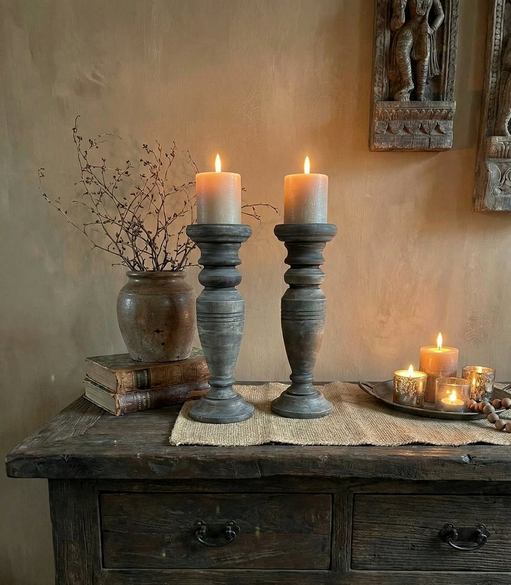 Een houten kandelaar is een prachtig decoratief item dat perfect past in een landelijke woonstijl. De kleur van het hout past perfect bij diverse interieurstijlen, van landelijk tot modern. Ideaal voor op een dressoir, sidetable, of vensterbank, straalt deze landelijke houten kandelaar een gevoel van gezelligheid uit.