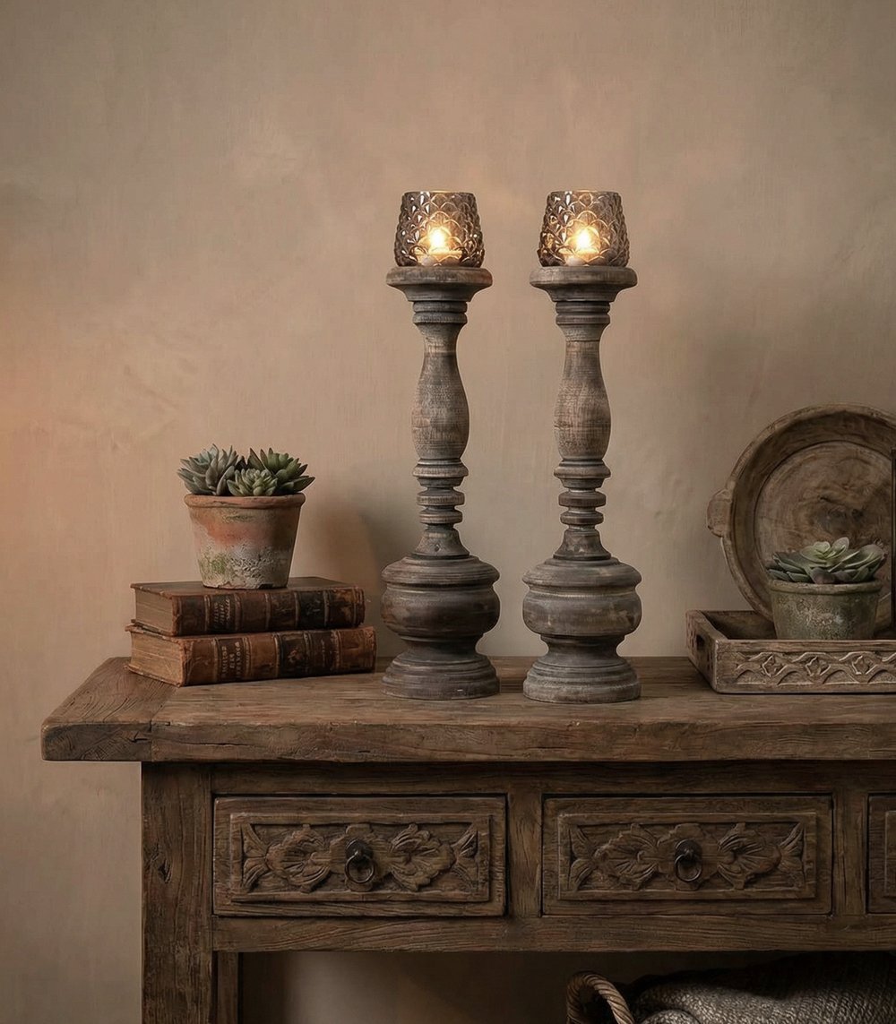 Een houten kandelaar is een prachtig decoratief item dat perfect past in een landelijke woonstijl. De kleur van het hout past perfect bij diverse interieurstijlen, van landelijk tot modern. Ideaal voor op een dressoir, salontafel of vensterbank, straalt deze landelijke houten kandelaar een gevoel van gezelligheid uit.