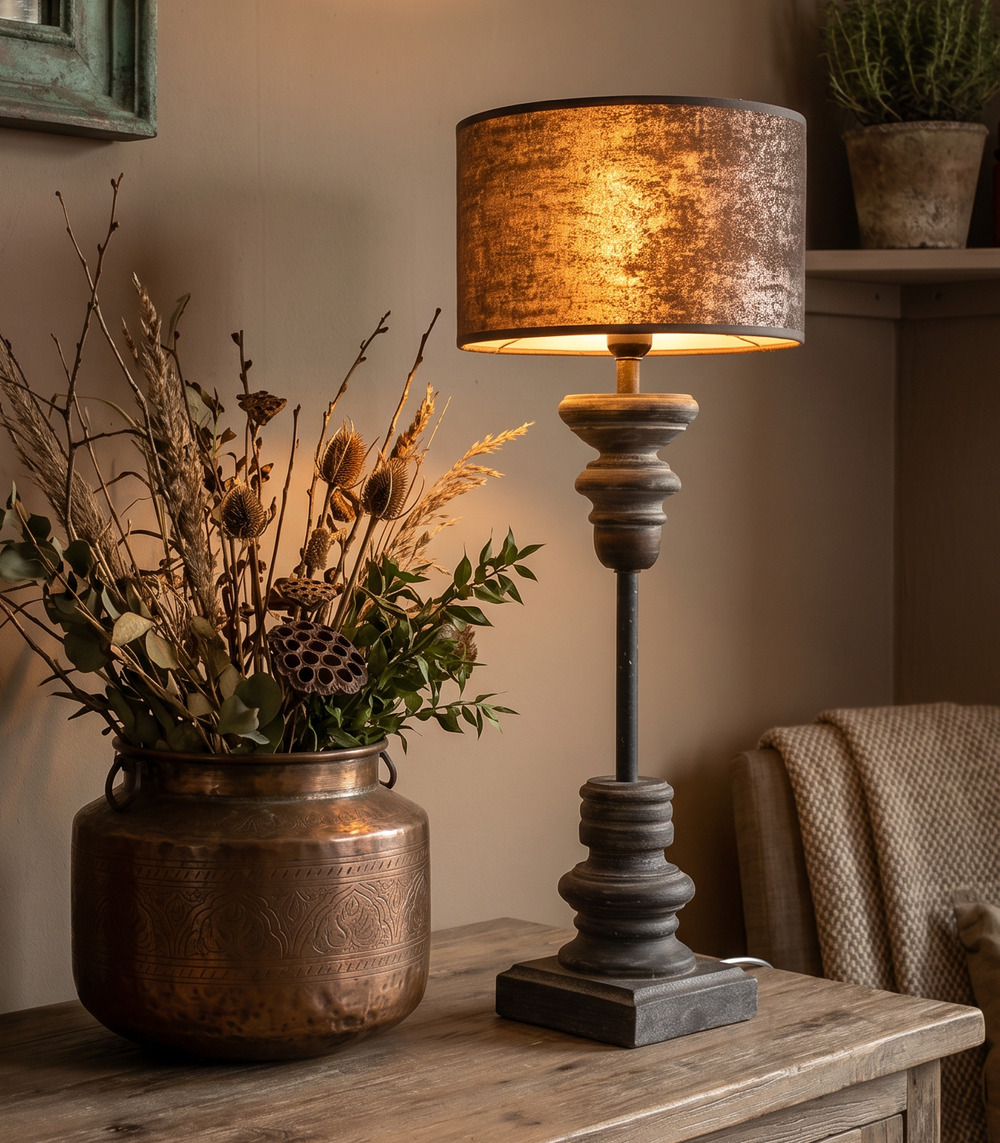 Deze houten lampenvoet in landelijke stijl is een echte sfeermaker in huis. De robuuste vorm en de donkere afwerking geven de lamp een warme, rustige uitstraling die perfect past in een landelijk of sober interieur. In combinatie met een mooie lampenkap ontstaat er een sfeervolle tafellamp die prachtig staat op een dressoir, kast, vensterbank of nachtkastje. Door de natuurlijke uitstraling laat deze landelijke lampenvoet zich makkelijk combineren met andere woonaccessoires en materialen.