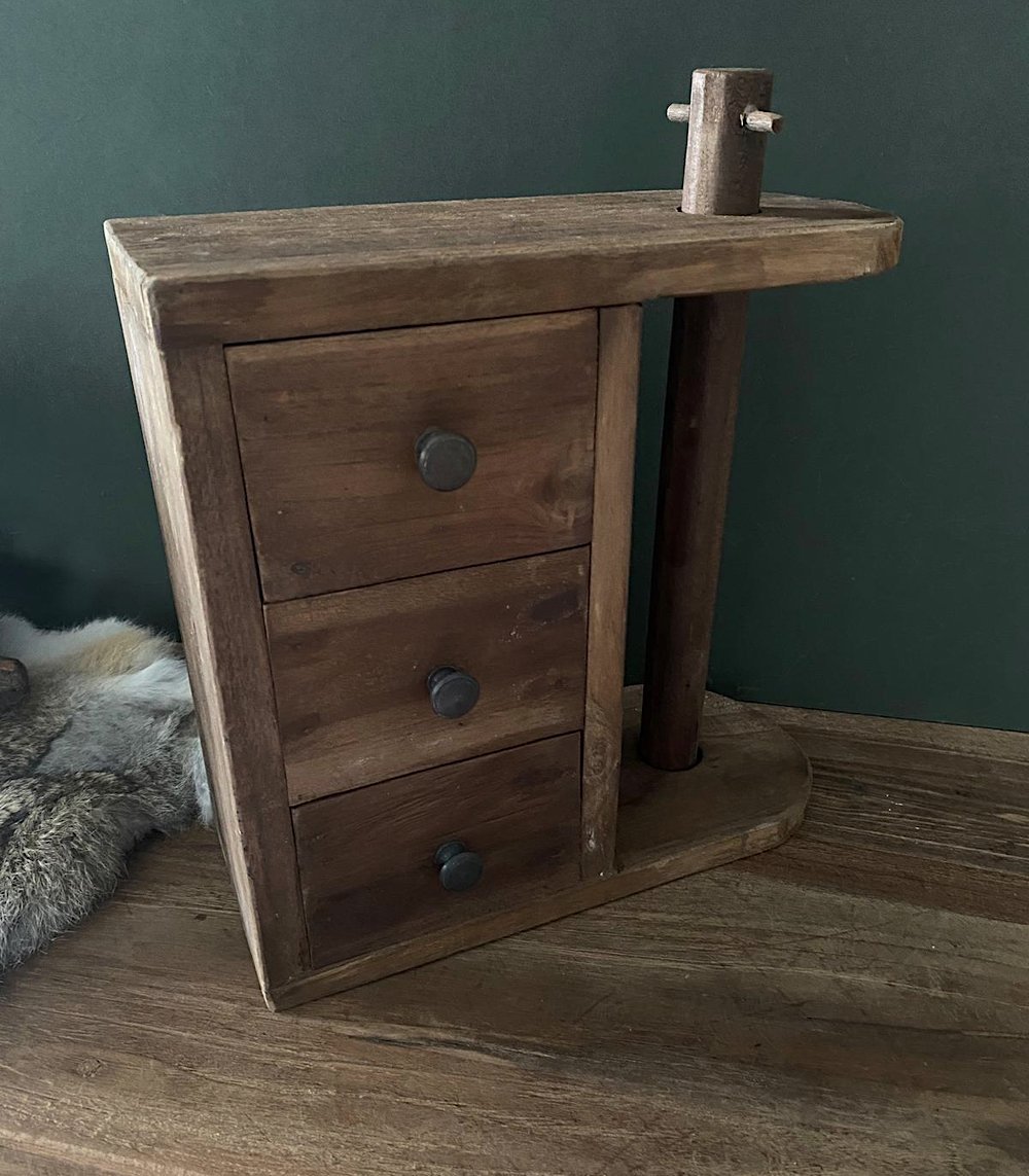 Home » Shop » Keukenrolhouder – 3 lades – Teakhout