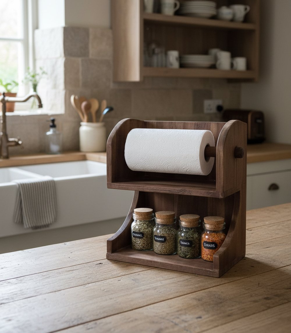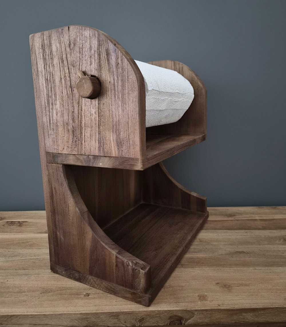 Deze houten keukenrolhouder is een praktische en stijlvolle toevoeging aan je keuken. Gemaakt van teakhout, biedt het een eenvoudige manier om je keukenrol netjes op te bergen en makkelijk te gebruiken. Dankzij het natuurlijke materiaal past deze houder perfect in een landelijk of stoer interieur.