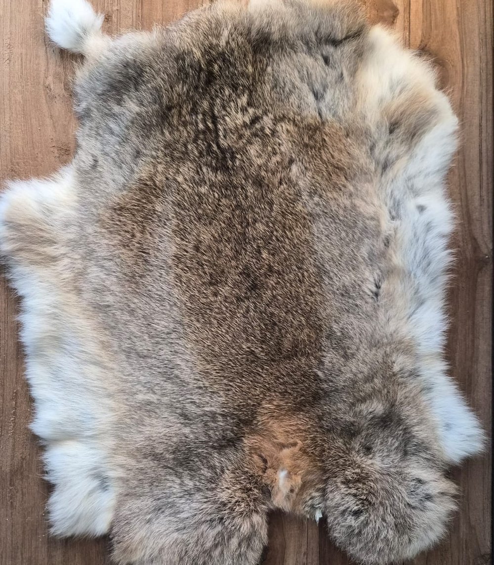 Prachtige decoratieve konijnenvacht. Leuk als styling op een bijvoorbeeld een dressoir. Door het natuurlijke karakter is iedere vacht uniek en past deze perfect binnen een landelijk, sober of rustiek interieur.