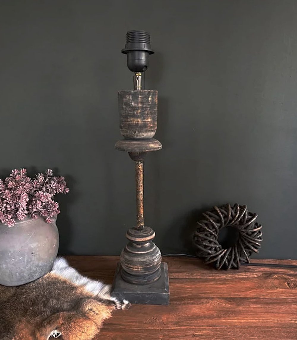 Landelijke schemerlamp inclusief shabby lampenkap. Deze schemerlamp kan dienen als een sfeervolle aanvulling in een landelijk interieur. De verweerde uitstraling van hout past perfect bij een landelijke of rustieke inrichting.