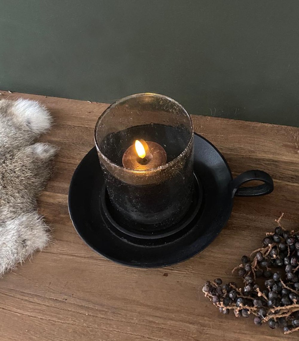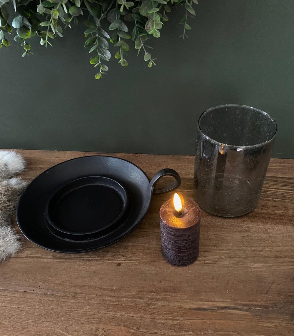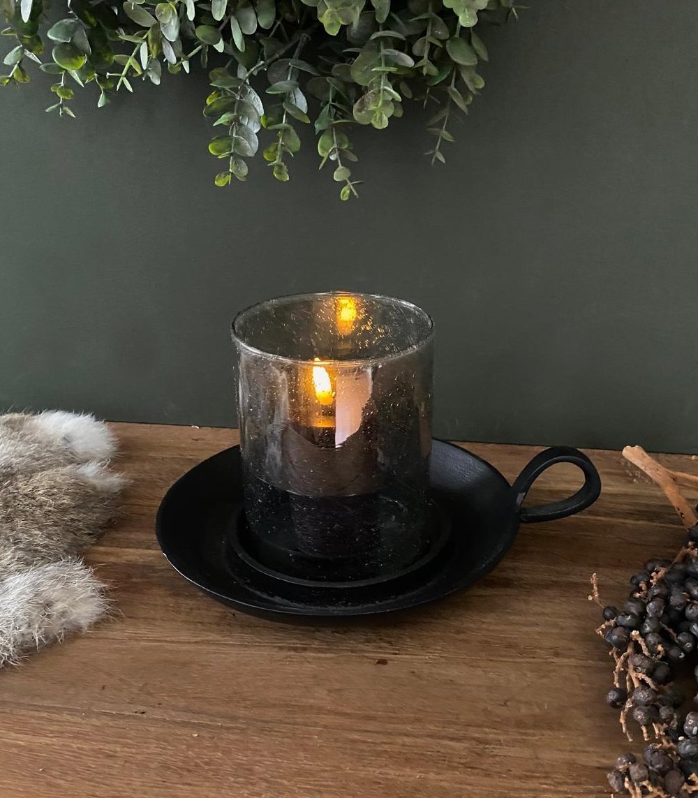 Metalen Kandelaar met Windlicht Glas en Ledkaars