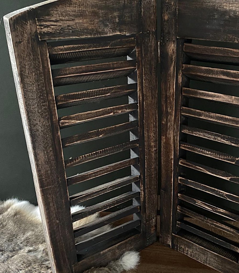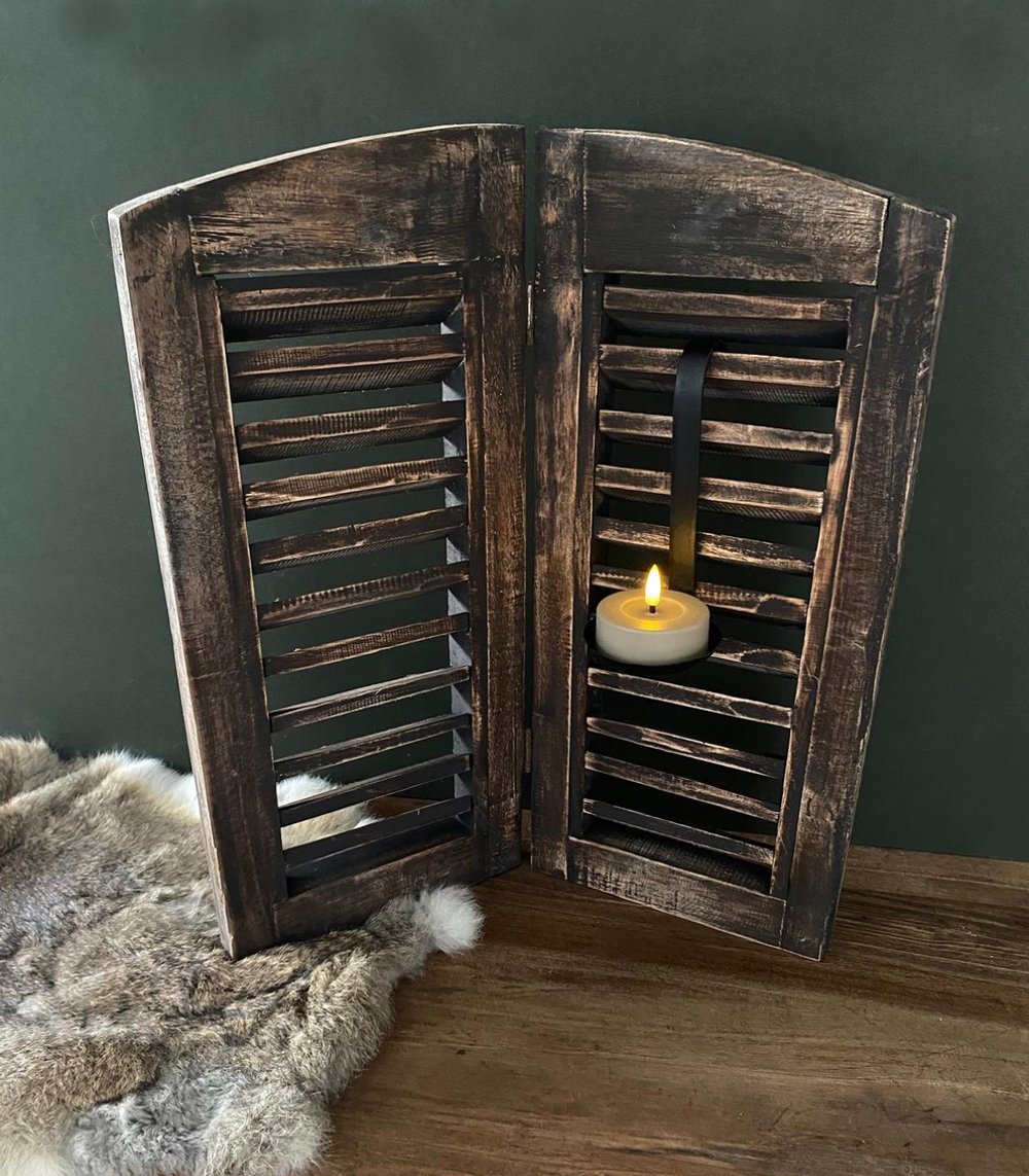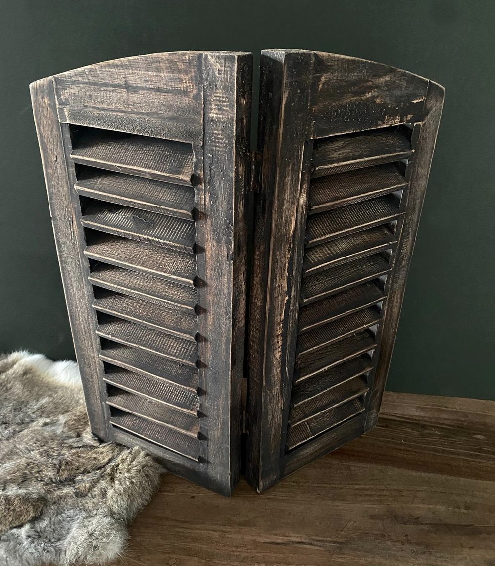 Prachtige decoratieve raam shutter bestaande uit 2 luiken. Leuk om bijvoorbeeld als vensterbank decoratie te gebruiken.