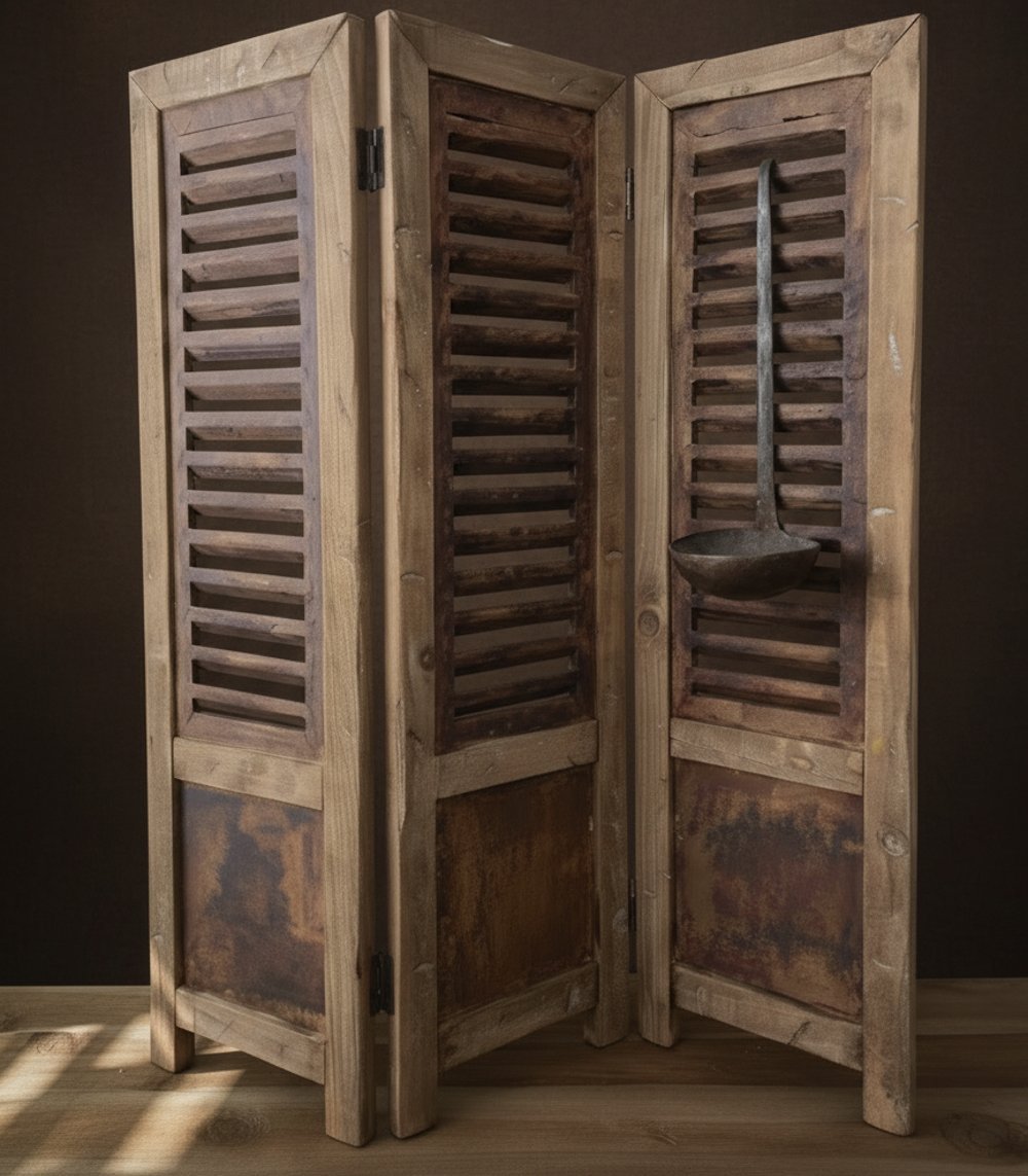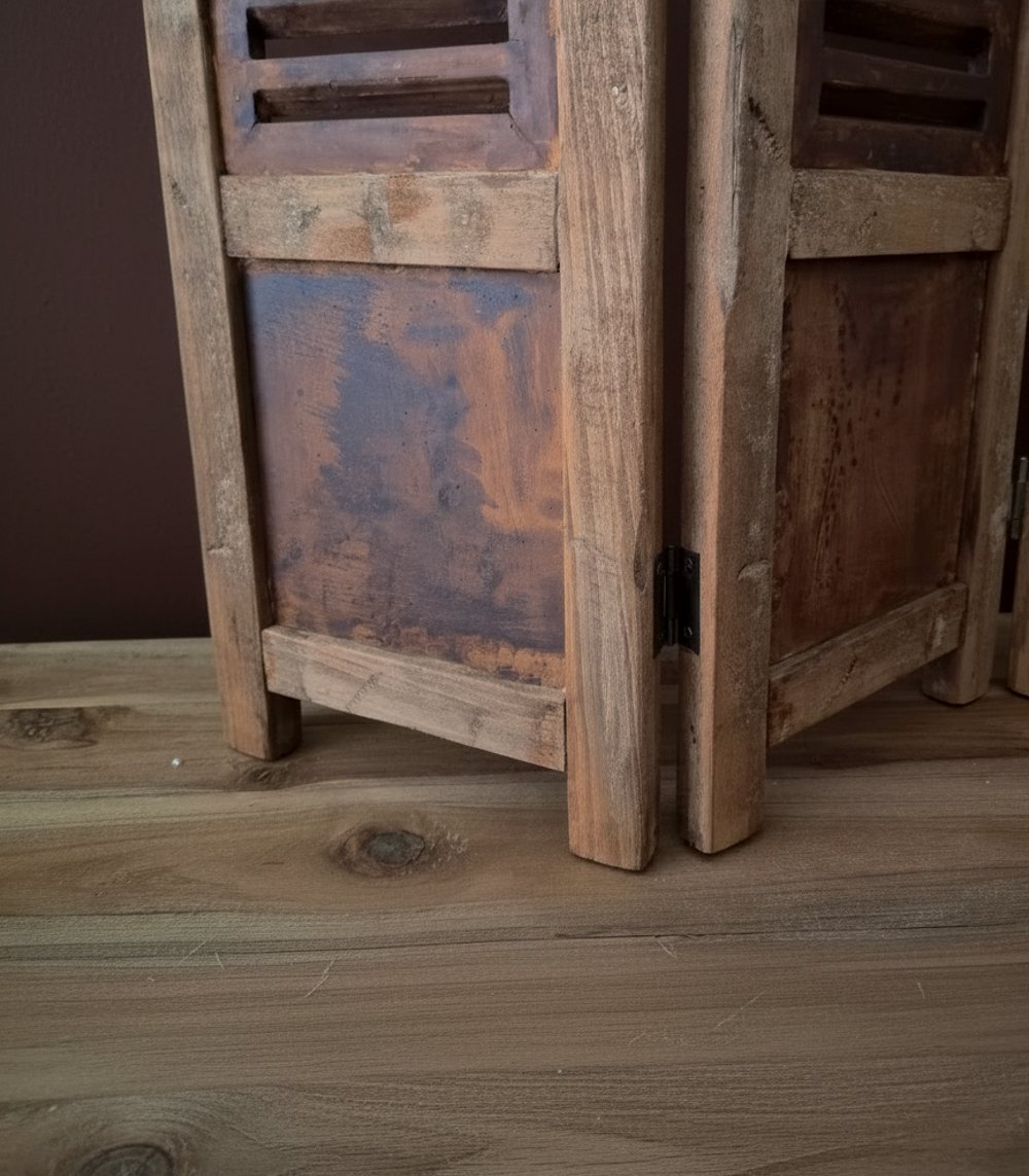Prachtige decoratieve raam shutter bestaande uit 3 luiken. Deze raam shutter is met de hand vervaardigd en perfect te gebruiken als decoratie op de vensterbank, dressoir of sidetable. Een mooie toevoeging aan je interieur die direct sfeer brengt in je woonkamer.