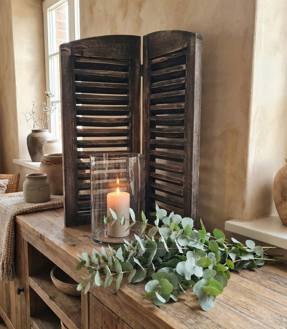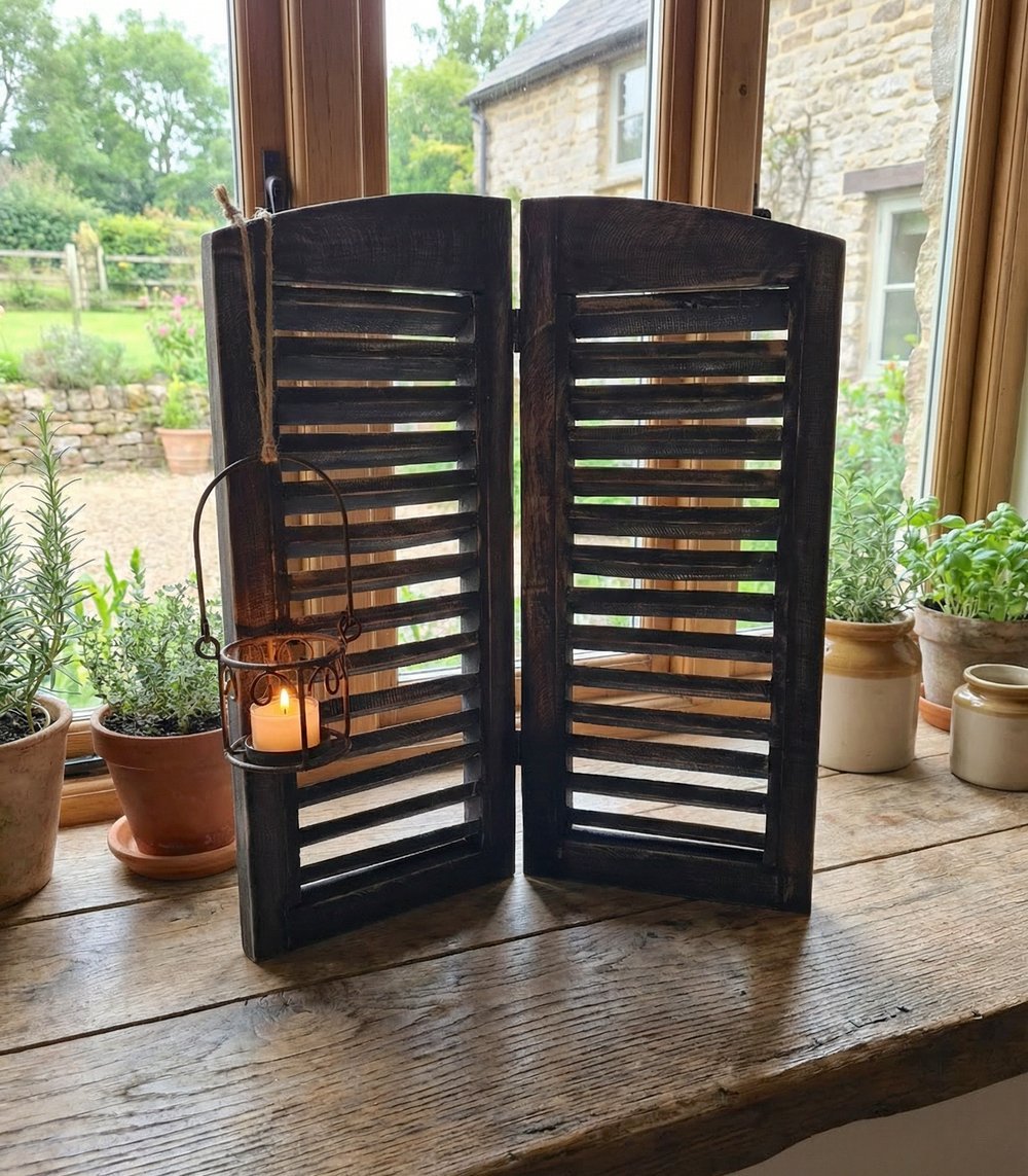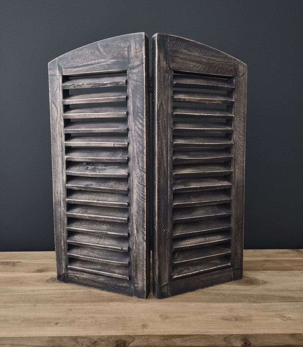 Prachtige decoratieve raam shutter, raamscherm bestaande uit 2 luiken. Leuk om bijvoorbeeld als vensterbank decoratie te gebruiken.