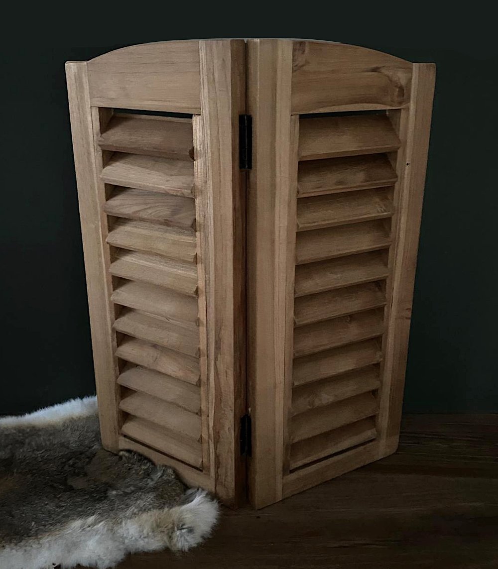 Prachtige decoratieve raam shutter bestaande uit 2 luiken gemaakt van Teakhout. Leuk om bijvoorbeeld als vensterbank decoratie te gebruiken. Een mooie toevoeging aan je interieur die direct sfeer brengt in je woonkamer.