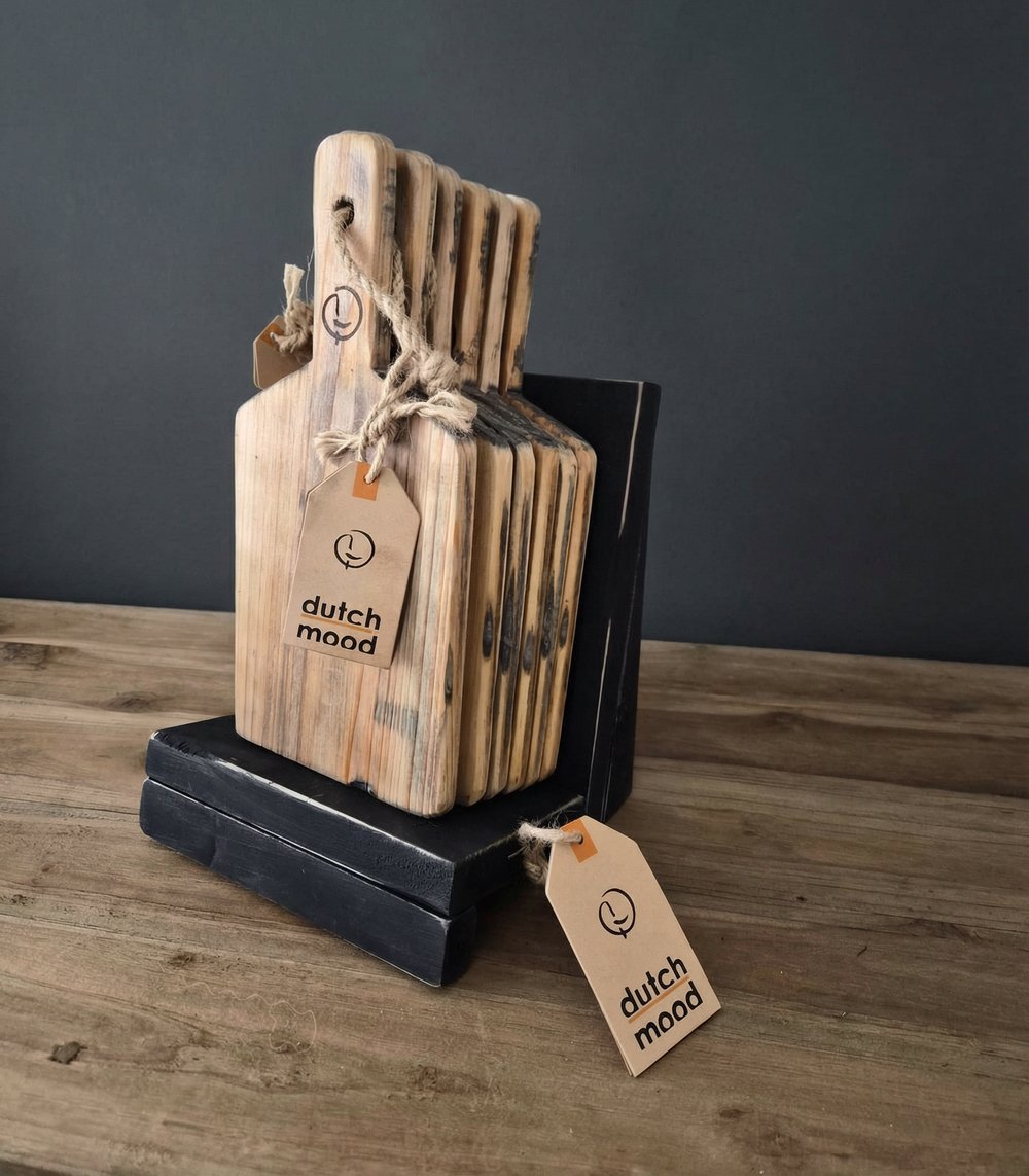 Deze robuuste houten mini snijplanken zijn echte sfeermakers in huis. Met natuurlijke houtstructuur en karaktervolle afwerking passend in een landelijk of industrieel interieur.